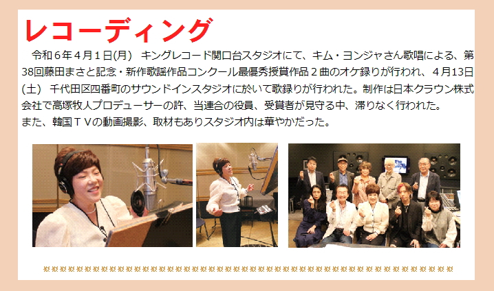 | --令和6年度 第39回 新作歌謡作品コンクール『作曲』入賞作品-- |